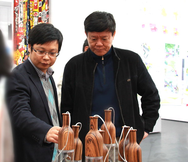 苏一凡陈新观看艺术设计学院成立十周年作品展