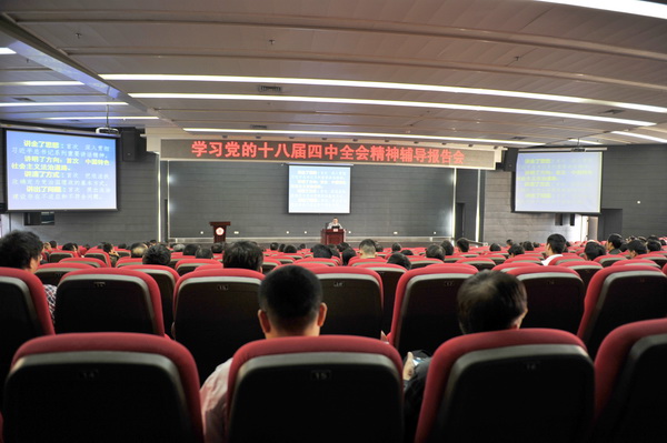 宋儒亮围绕十八届四中全会精神,把党的十八大、十八届三中全会和四中全会精神有机联系和结合起来,深入浅出地阐述了四中全会关于中国法治建设的重点和亮点,抽丝剥茧地讲解了法治建设的进展,并对推进依法治国作了远景前瞻。整场报告条理清晰,信息量大,思想性强,对我校党员干部和教师深入学习贯彻好党的十八届四中全会精神有较大的指导和帮助。