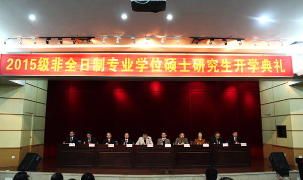 本网讯 3月7日上午,我校2015级非全日制专业学位研究生开学典礼在东风路校区举行。校领导苏一凡、汤耀平、米银俊、章云、陈立中、张力、郝志峰、张光宇、陈卓武、张学理出席。相关部门、学院负责人,部分导师及300多名2015级新生等参加开学典礼。副校长张光宇主持。