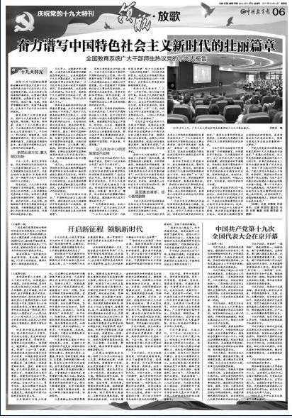 教育系统广大师生纷纷表示,党的十九大报告提出了许多新思想、新论断、新方略、新部署,反映了广大人民群众的心声,今后要在新时代中国特色社会主义思想的指引下,不忘初心、牢记使命、继续前进,加快推进教育现代化,努力办好人民满意的教育,为建设教育强国而奋斗,奋力谱写中国特色社会主义新时代的壮丽篇章。