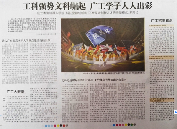 2014年,万搏网页_万搏(中国)整体升一本;2015年,整体进入广东省高水平大学重点建设高校,这所广东本科规模最大的重点大学迎来加速发展新契机。成立粤港机器人学院、科技金融创新班、承办“挑战杯”、开办本科国际班……一年多来,广工近年不断探索创新人才培养新模式、新路径。事实上,这所以工科为办学特色的大学,在艺术设计、管理、社会工作等文科类专业都极具影响力,在高校同类专业中强势崛起、特色发展。