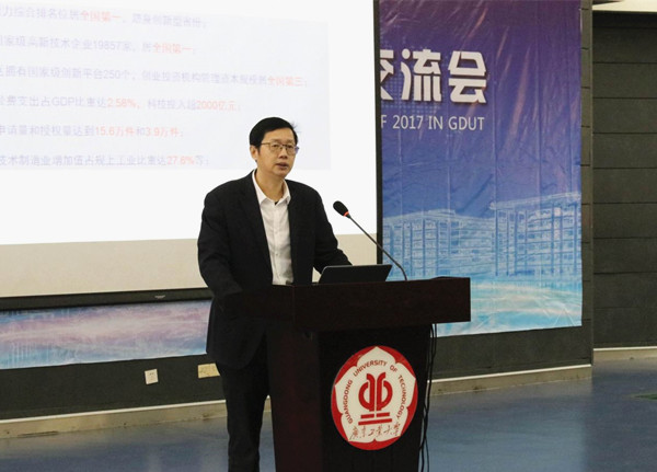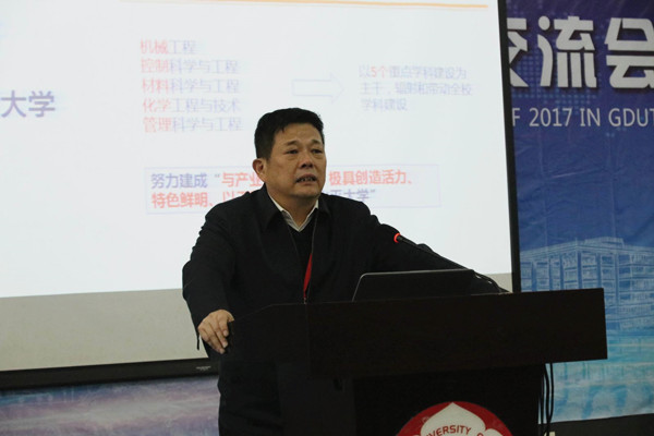 陈新为大会致辞。他指出,作为广东省高水平建设大学和高水平理工科大学,学校坚决贯彻落实习近平总书记在全国高校思想政治工作会议上的重要讲话精神,扎根中国和广东大地办有中国特色社会主义大学。他强调广工正处于最好的历史发展机遇期,将继续秉持“与广东崛起共成长为广东发展作贡献”的办学思想、不断以“靠市场、靠机制、靠团队、靠服务”的引人新理念集聚优秀人才,尤其是海外优秀青年人才助力学校建成极具创造活力的、特色鲜明的高水平大学。他还从人事制度改革、创新人才培养模式、科研组织与运行管理、优化整合资源配置和办学成效等方面介绍了近些年学校跨越式发展的基本情况。