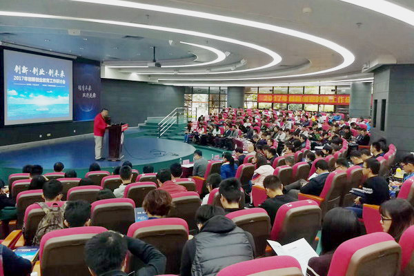 本网讯 11月27日上午,2017年创新创业教育工作研讨会在万搏网页_万搏(中国)大讲堂圆弧报告厅举行。研讨会邀请了来自全国高校创新创业投资服务联盟、万学教育集团、成都知度知识产权研究院等全国创新创业教育领域知名专家学者、投资人、大赛评委、优秀企业家和大学生创业者等。副校长章云、副校级干部张学理、学校协同创新平台负责人、相关机关部处负责人、各学院党委副书记、辅导员及学生代表共200余人出席。