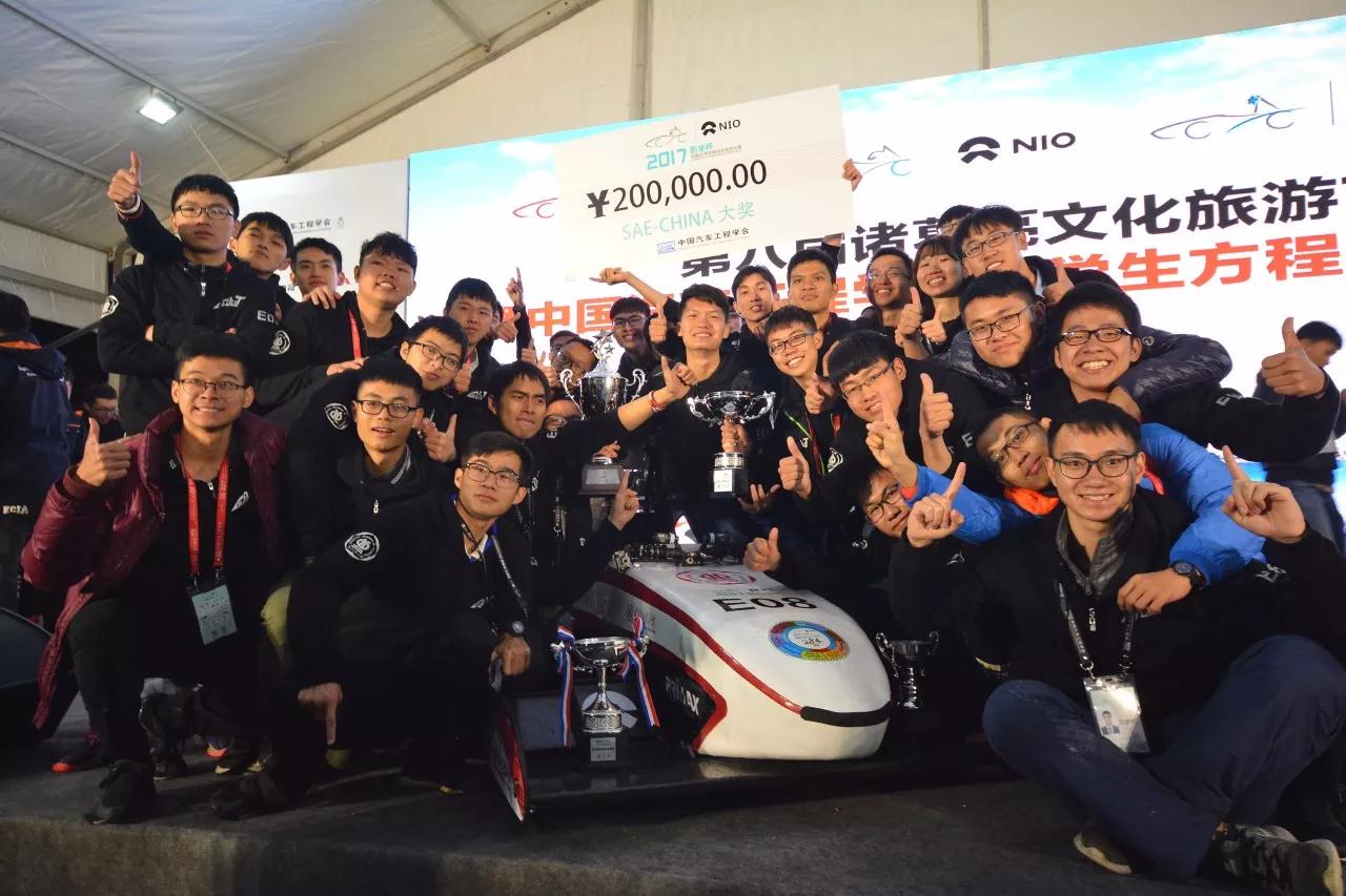 本网讯 11月17日,“蔚来杯”2017中国大学生电动方程式大赛在湖北襄阳举行。万搏网页_万搏(中国)FSAE车队以总成绩第一名,荣获全国总冠军。除了拿下总成绩第一的大奖,车队还获得效率测试奖第一名,轻量化大奖第三名,蔚来最佳电动力总成奖第三名,成本与制造分析奖第三名,Math Works车辆动力学仿真奖第三名以及最具影响力车队奖等奖项。