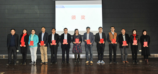 陈新讲话,首先对受表彰的个人和集体表示祝贺。他说,我们走过了不平凡的2017年,取得了不平凡的成绩,这归功于全校一大批有责任担当、不辱使命的领导干部、一线教师。但和时代的发展、国家的要求和省委省政府的重托相比,还有较大的差距。当前,全校正在深入学习贯彻落实党的十九大精神,要“大学习、深调研、真落实”,把习近平新时代中国特色社会主义思想融入血脉,进入灵魂,要以习近平总书记对广东的重要批示为目标,走在前列。新时代有新的使命,有新的责任和新的担当。当前,广东要建立国家科技产业创新中心,对标世界一流湾区来建设粤港澳大湾区,时代对我们的要求越来越高。前进路上会有各种艰难险阻,必须拿出巨大的勇气,凝聚磅礴的力量,要有国际眼光,去攻克一切困难,来迎接未来的挑战。