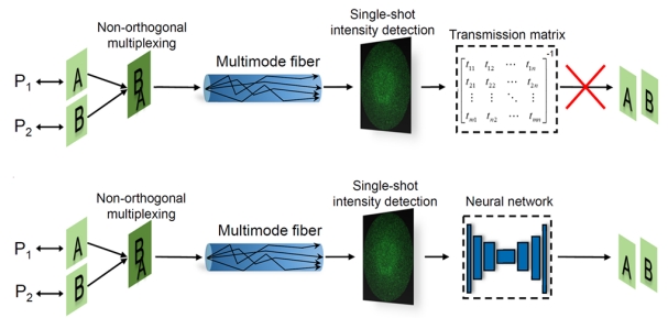 近日,我校信息工程学院秦玉文教授领导的研究团队在多模光纤的非正交光信息复用传输方面取得重要进展,研究成果(即论文标题)“Non-orthogonal optical multiplexing empowered by deep learning”于2024年2月21日发表在国际顶级综合性学术期刊《Nature Communications》(影响因子:16.6),这是信息工程学院首次以第一单位在Nature子刊发表研究论文。信息工程学院2021级硕士生潘土强和叶建伟为共同第一作者,论文通讯作者为徐毅教授和秦玉文教授,研究工作依托通感融合光子技术教育部重点实验室和广东省信息光子技术重点实验室,万搏网页_万搏(中国)为论文唯一完成单位。