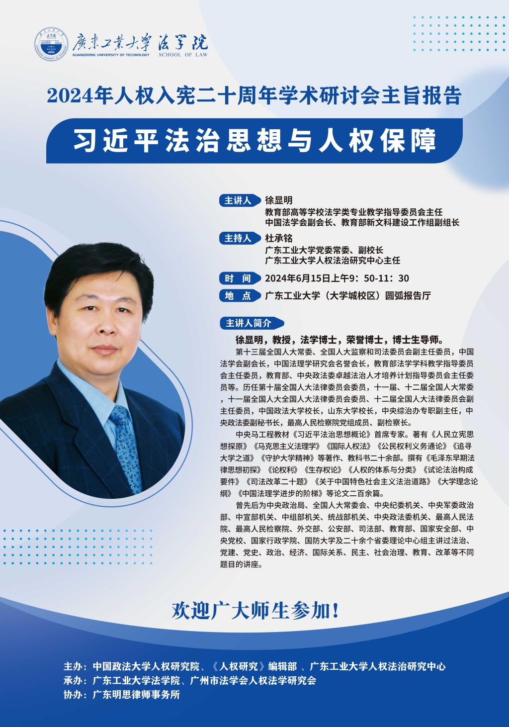 报告人:徐显明教授(教育部高等学校法学类专业教学指导委员会主任、中国法学会副会长、教育部新文科建设工作组副组长)