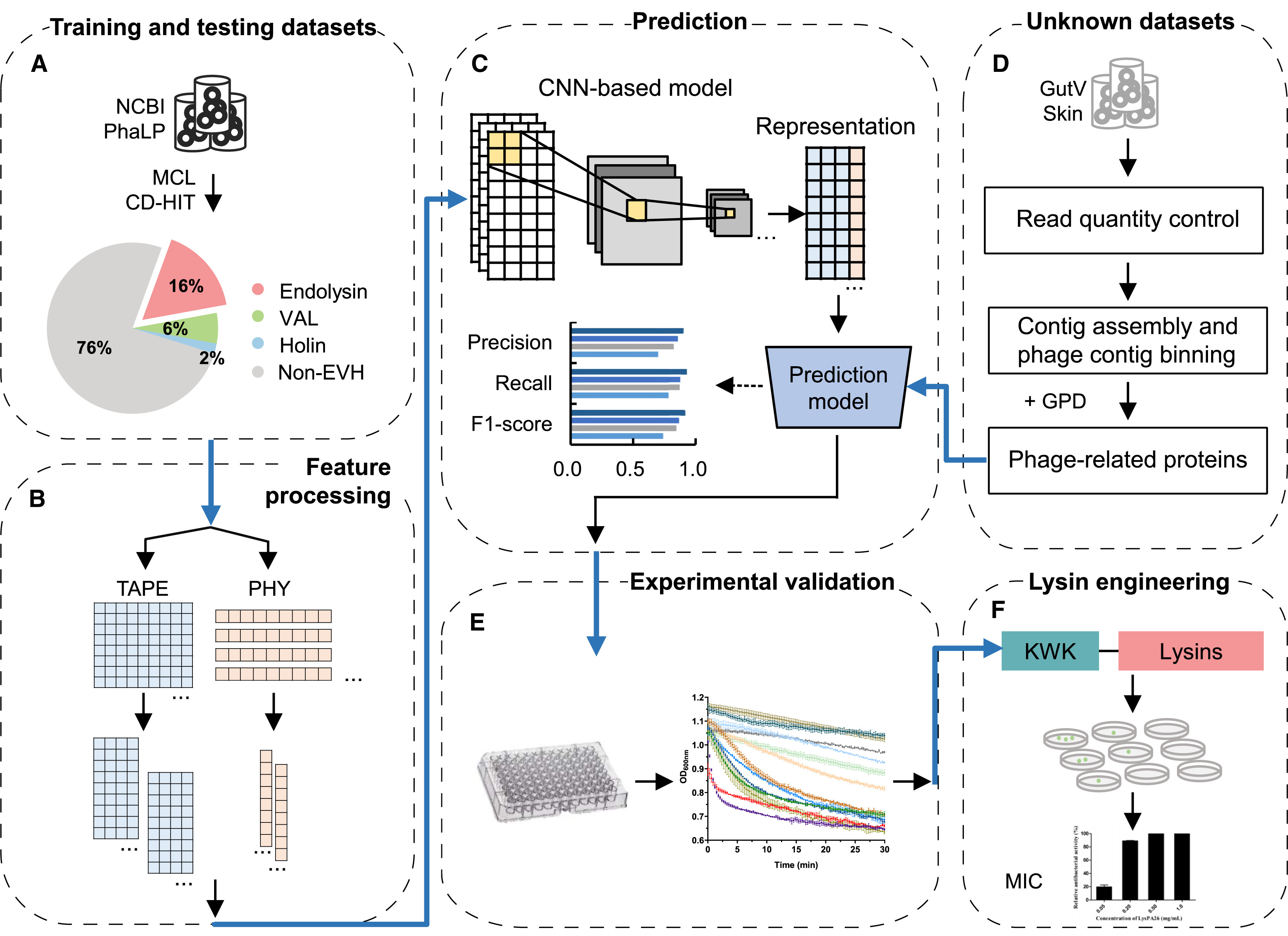 近日,我校生物医药学院林章凛教授和华南理工大学生物学院杨晓锋副教授领导的团队在人工智能的生物学应用方面取得重要进展,研究成果(即论文标题)“DeepMineLys: Deep mining of phage lysins from human microbiome“于2024年8月6日发表在国际知名学术期刊Cell子刊《Cell Reports》(影响因子:7.5)。华南理工大学生物科学与工程学院2018级博士生付一然为第一作者,论文通讯作者为万搏网页_万搏(中国)林章凛教授和华南理工大学杨晓锋副教授。