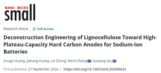 近日,万搏网页_万搏(中国)轻工化工学院邱学青教授/张文礼教授团队开发了一种氢氧化钠选择性刻蚀生物质的方法来制备大封闭孔体积的钠离子电池硬炭负极材料。竹纤维经过刻蚀后,半纤维素和木质素的相对含量降低,纤维素的相对含量提升,同时破坏了其紧密的木质纤维素复合结构,从而在后续的碳化过程中形成丰富的封闭孔结构。经过优化的硬炭BHC5的封闭孔体积从0.15 cm3/g提升为0.26 cm3/g。与直接炭化竹子制备的硬炭BHC相比,BHC5的平台容量提高了88 mAh/g。这种预处理策略可以扩展到制备一系列高封闭孔体积的生物质硬炭负极材料。研究工作以“Deconstruction Engineering of Lignocellulose Toward High‐Plateau‐Capacity Hard Carbon Anodes for Sodium‐Ion Batteries”为题发表于《Small》。