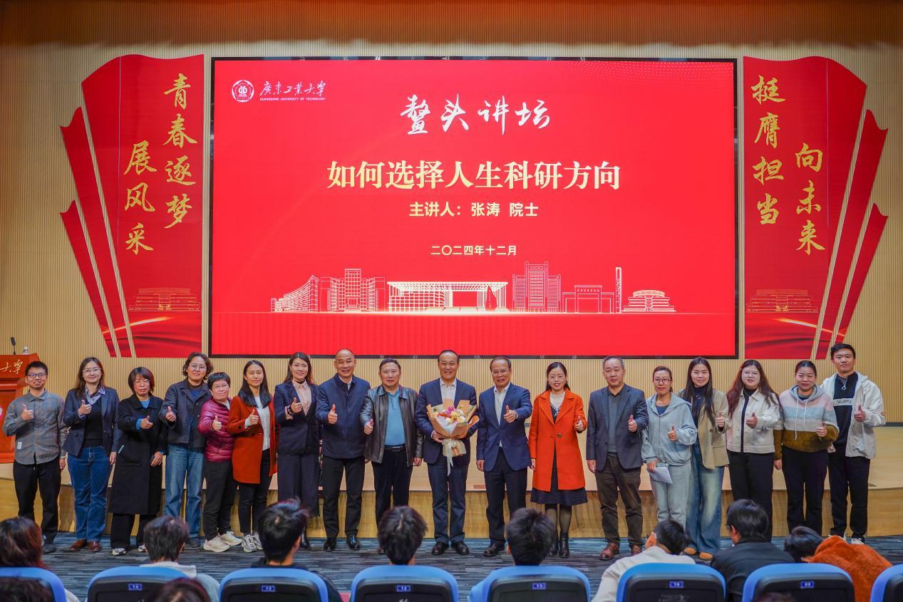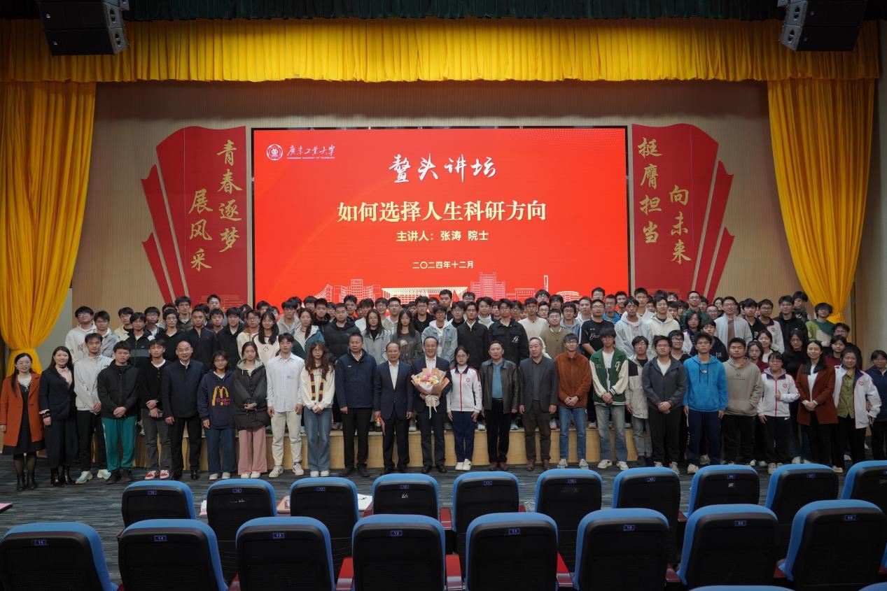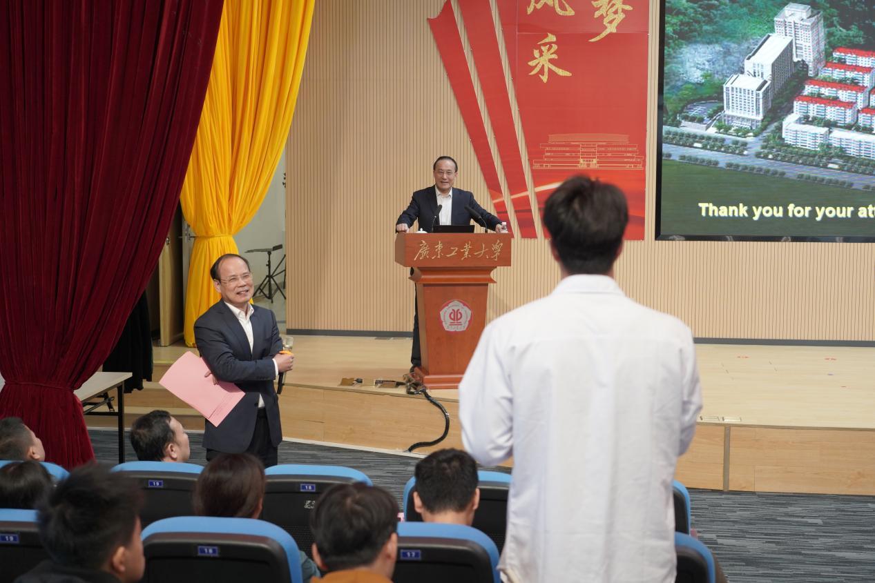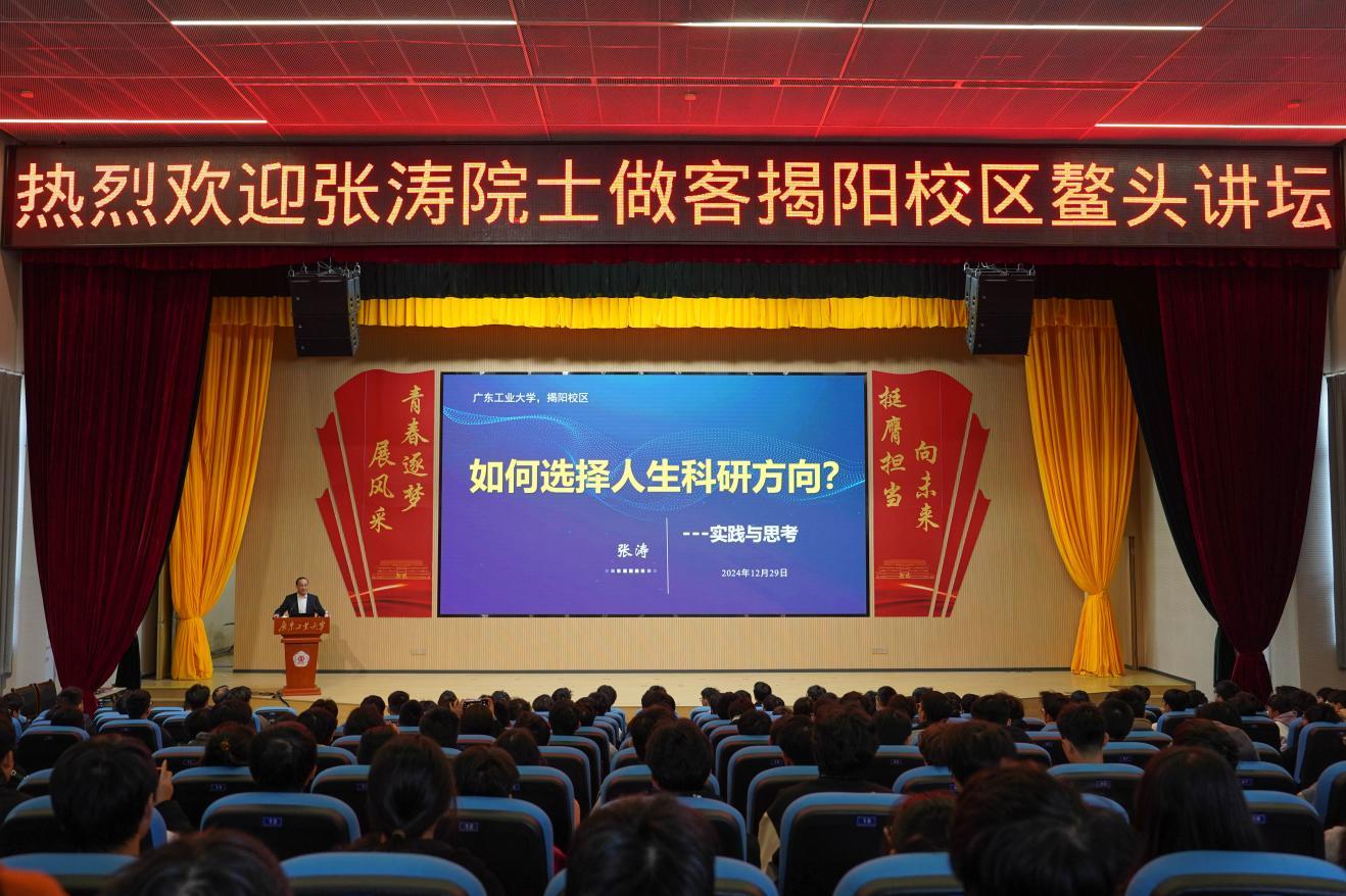 为引导学生明确人生发展道路,科学选择人生科研方向,12月29日上午,中国科学院大连化学物理研究所研究员,中国科学院院士、发展中国家科学院院士、加拿大工程院国际院士张涛院士受邀做客揭阳校区鳌头讲坛。张涛院士曾任中科院大连化学物理研究所所长、中国科学院副院长。他以“如何选择人生科研方向”为主题给揭阳校区师生带来一场主题鲜明、精彩纷呈的高质量讲座。学校党委副书记、校长邱学青主持。学校党委常委、副校长鲁仁全,副校长余林,学校相关部处负责人和揭阳校区负责人及师生200余人聆听了讲座。