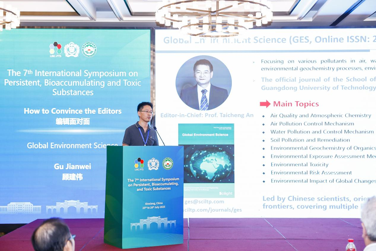 7月25日至27日,GES期刊再次亮相在河南新乡举办的第七届持久性、生物蓄积性、有毒物质国际研讨会(IJRC-PTS 2025)。本次会议以“新污染物的毒性、环境健康和风险管理”为主题,吸引了全球该领域的顶尖学者参与。GES执行主编顾建伟在“编辑面对面”大会论坛中详细介绍了期刊的定位与特色,并强调了期刊对新污染物研究的重视。