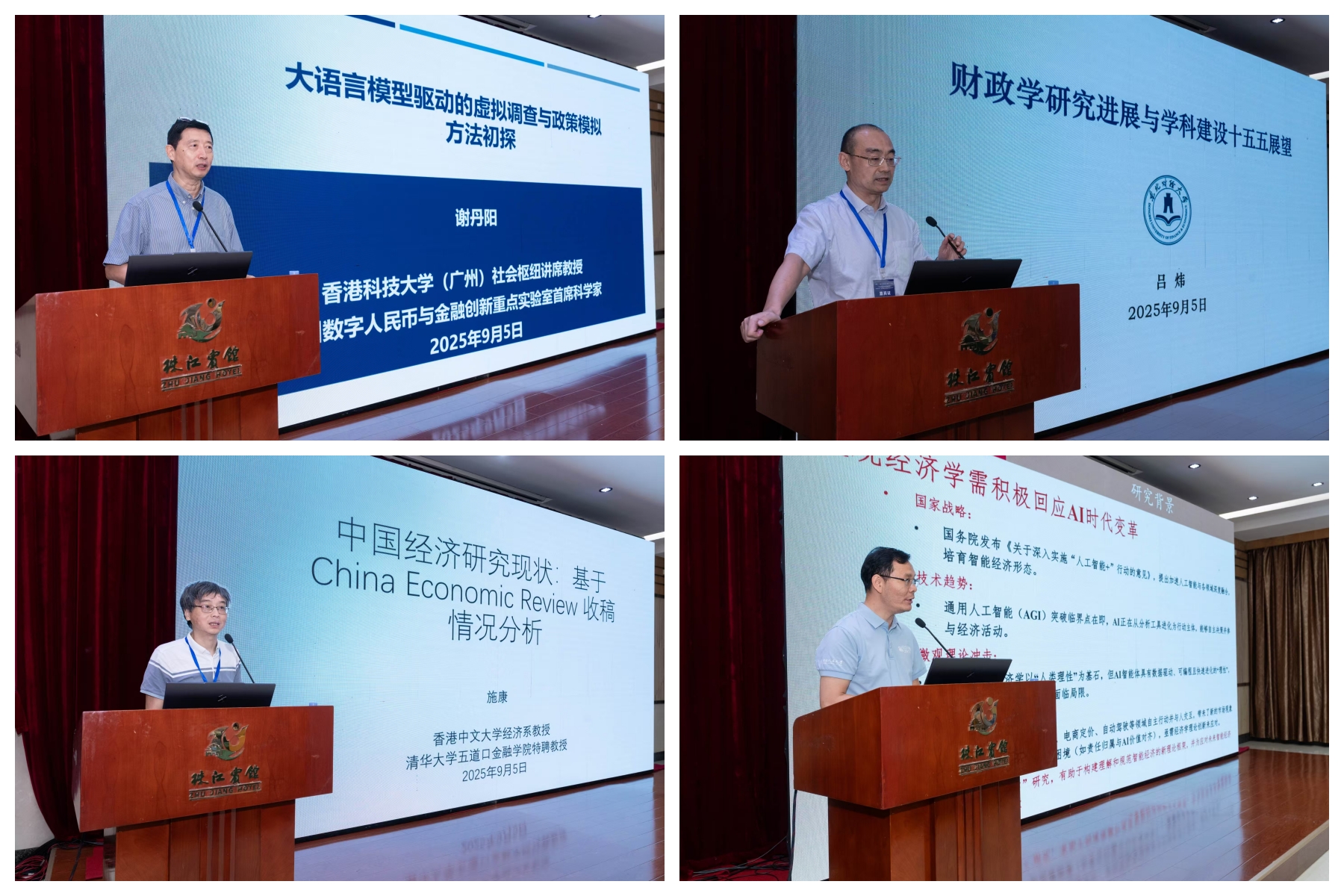 随后,香港科技大学(广州)谢丹阳教授、东北财经大学吕炜教授、香港中文大学施康教授、中国人民大学李三希教授分别带来了主题演讲,题目依次为“大语言模型驱动的虚拟调查与政策模拟方法初探”“财政学研究进展与学科建设‘十五五’展望”“中国研究现状:基于China Economic Review收稿情况的分析”“智能体与微观经济学研究前沿”。