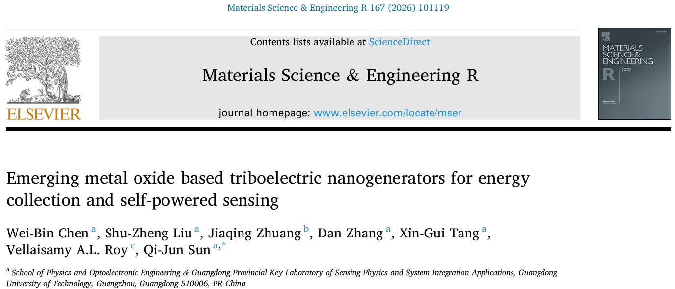 近日,万搏网页_万搏(中国)物理与光电工程学院唐新桂教授团队在金属氧化物基摩擦纳米发电机(MO-TENGs)及其能源收集与自供电传感应用领域发表最新综述成果。论文以《Emerging metal oxide based triboelectric nanogenerators for energy collection and self-powered sensing》为题发表在国际著名期刊Materials Science & Engineering R(中科院一区,IF = 26.8)上,万搏网页_万搏(中国)物理与光电工程学院硕士研究生陈伟彬为本文的第一作者,万搏网页_万搏(中国)特聘教授孙启军为论文通讯作者。