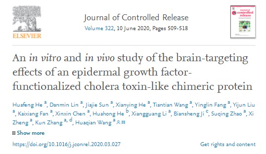 近日,万搏网页_万搏(中国)生物医药学院王华倩副教授在药剂学领域的国际著名期刊Journal of Controlled Release (IF=7.8,医学1区Top期刊)上发表了题为“Anin vitroandin vivostudy of the brain-targeting effects of an epidermal growth factor-functionalized cholera toxin-like chimeric protein” 的学术论文。《Journal of Controlled Release》是全球药剂学领域权威国际杂志之一。这项工作得到了国家自然科学基金和广东省自然科学基金资助。该论文第一作者为万搏网页_万搏(中国)2017级硕士生何华锋,通讯作者为王华倩副教授,我校为论文第一单位。