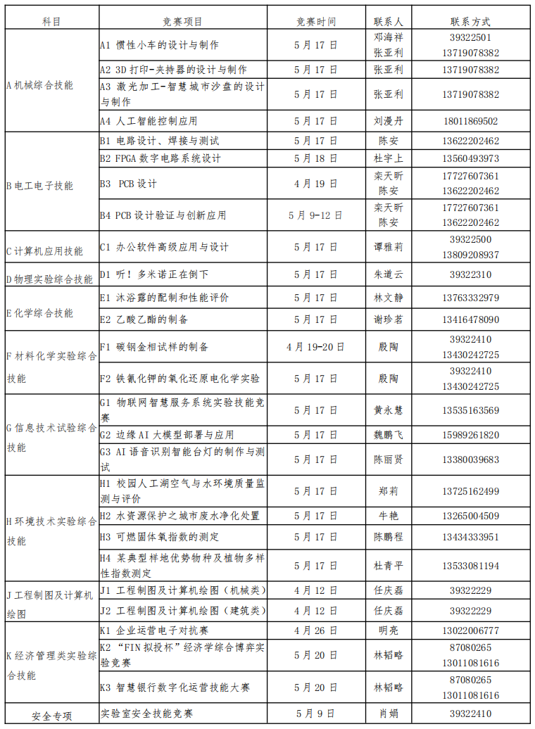 竞赛项目安排如下(各项目具体实施方案见附件):