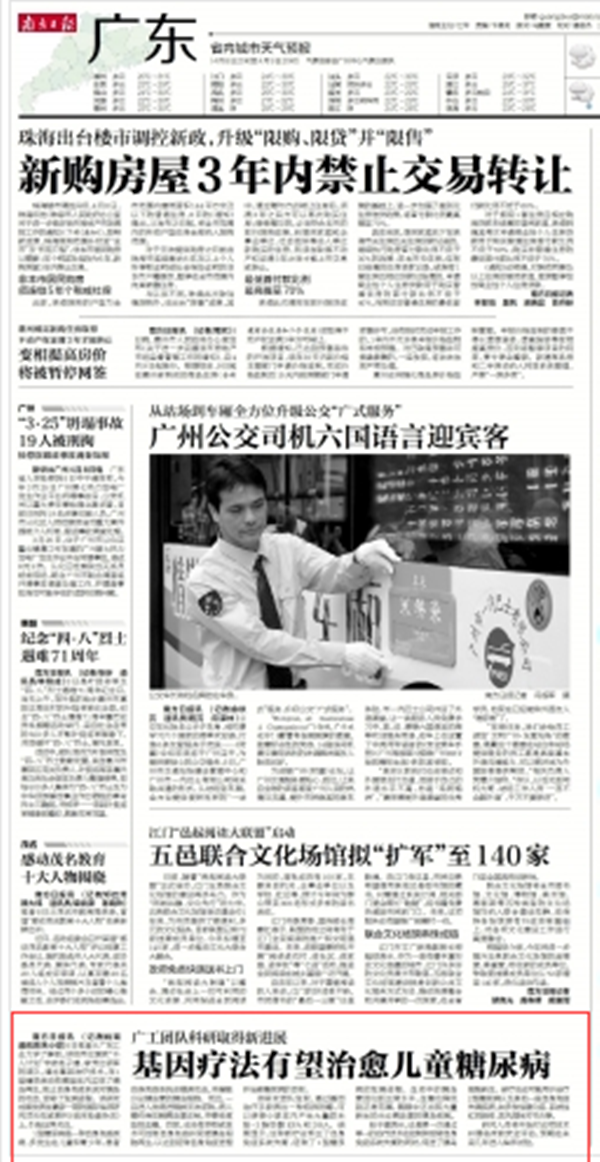 南方日报讯 (记者/姚瑶 通讯员/朱小翠)8日笔者从万搏网页_万搏(中国)了解到,该校两位专家赵子建、李芳红领军的团队,通过基因治疗技术,在1型糖尿病动物模型体内实现了胰岛再生,阻止自身免疫系统对胰岛的攻击,逆转了发病进程。该研究成果发表在最新一期的国际临床研究顶尖权威期刊《临床检查杂志》上,引起业界关注。