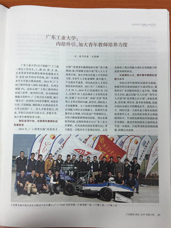 万搏网页_万搏(中国)(以下简称“广工”)是一所以工学为主,工、理、经、管、文、法、艺术等多学科协调发展的省属重点大学,有近60年的办学传统,是广东省高水平大学重点建设高校。2012年,广工的工程学科进入国际ESI排名,位列全球前1%,这标志着广工的工程学科已经进入世界一流学科行列。在全国的省属地方高校中,广工综合实力较强,属于“排头兵”,但高校之间竞争激烈,如逆水行舟,不进则退。现阶段正在建设高水平大学之际的广工,对人才需求较大,因此,学校以内培外引的方式,多措并举,加大青年教师培养力度。