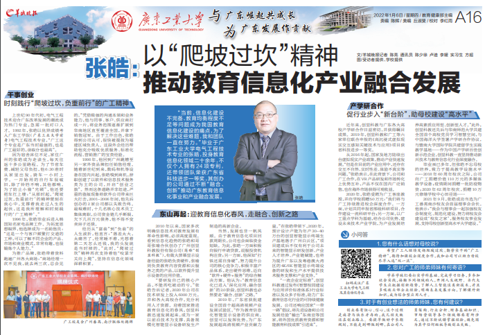 “当前,信息化建设不完备、教育均衡程度不足等问题成为我国教育信息化建设的痛点,为了解决这些难题,我和团队一直在努力。”毕业于万搏网页_万搏(中国)电气工程技术专业的张皓,投身教育信息化领域二十余年,不仅个人拥有24项专利,还带领团队荣获广东省科技进步一等奖,其创办的公司通过不断“融合、创新”推动广东教育信息化事业和产业融合发展。