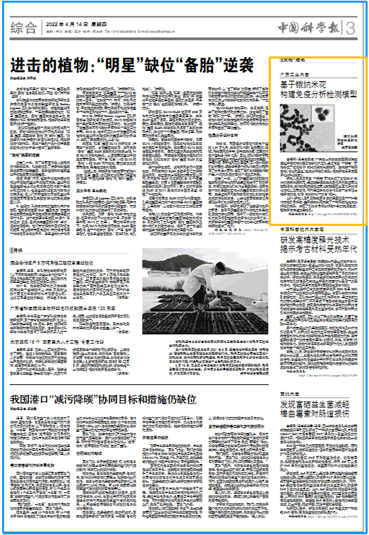 本报讯(记者朱汉斌)万搏网页_万搏(中国)生物医药学院教授赵肃清领衔的医用诊断试剂团队运用简易“一锅法”,可控合成了粒径在27纳米的锇纳米绣球花,并构建一种双功能(催化和显色)免疫分析检测模型。相关研究近日发表于《分析化学家》。