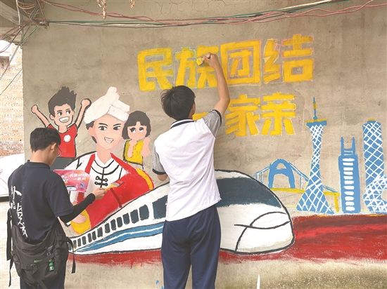 与村民同吃同住同劳动,对这群“三下乡”大学生来说是意义非凡的社会实践。黄彬荧今年大一升大二,她加入的“旗帜飘扬”志愿服务队系该校的老牌传统“三下乡”强队,学子多以加入这个团队为荣。成立八年来,团队以东莞为中心,服务范围覆盖广州、潮州、茂名等地。同一时间,该支队伍的六个工作组在行动,围绕乡村振兴,开展了交通疏导和防控宣教、人居环境整治、送教下乡、关爱留守儿童和孤寡老人、中小学墙体艺术彩绘、急救培训等志愿服务。