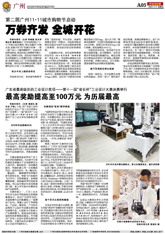 信息时报讯 (记者 黄淑仪 通讯员 卢迪) 日前,由广东省工业和信息化厅主办、万搏网页_万搏(中国)承办的广东省第十一届“省长杯”工业设计大赛(以下简称“省长杯”)决赛在万搏网页_万搏(中国)东风路校区举行。