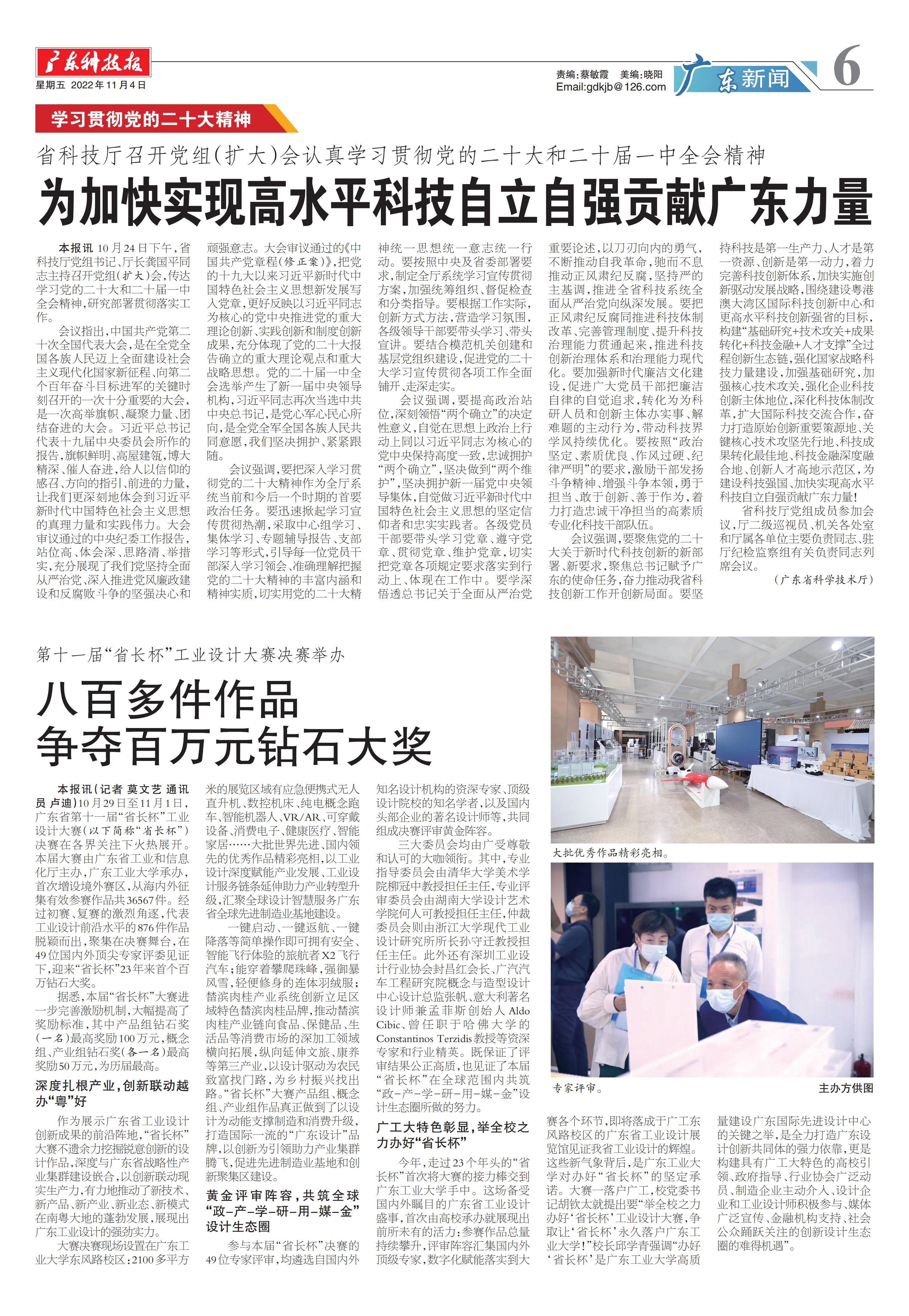 这些新气象背后,是万搏网页_万搏(中国)对办好“省长杯”的坚定承诺。大赛一落户广工,校党委书记胡钦太就提出要“举全校之力办好‘省长杯’工业设计大赛,争取让‘省长杯’永久落户万搏网页_万搏(中国)!”校长邱学青强调“办好‘省长杯’是万搏网页_万搏(中国)高质量建设广东国际先进设计中心的关键之举,是全力打造广东设计创新共同体的强力依靠,更是构建具有广工大特色的高校引领、政府指导、行业协会广泛动员、制造企业主动介入、设计企业和工业设计师积极参与、媒体广泛宣传、金融机构支持、社会公众踊跃关注的创新设计生态圈的难得机遇”。