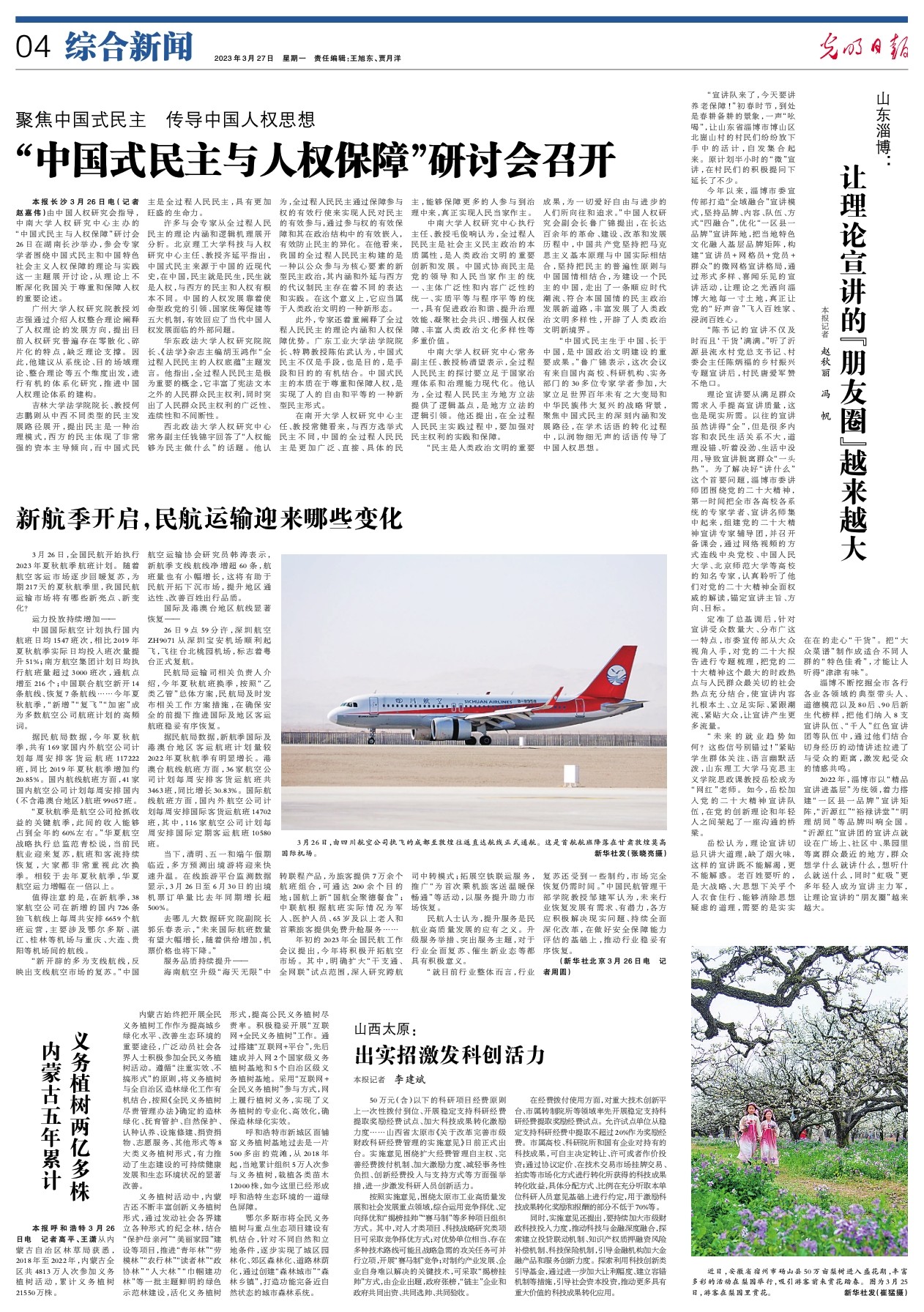 本报长沙3月26日电(记者赵嘉伟)由中国人权研究会指导,中南大学人权研究中心主办的“中国式民主与人权保障”研讨会26日在湖南长沙举办,参会专家学者围绕中国式民主和中国特色社会主义人权保障的理论与实践这一主题展开讨论,从理论上不断深化我国关于尊重和保障人权的重要论述。