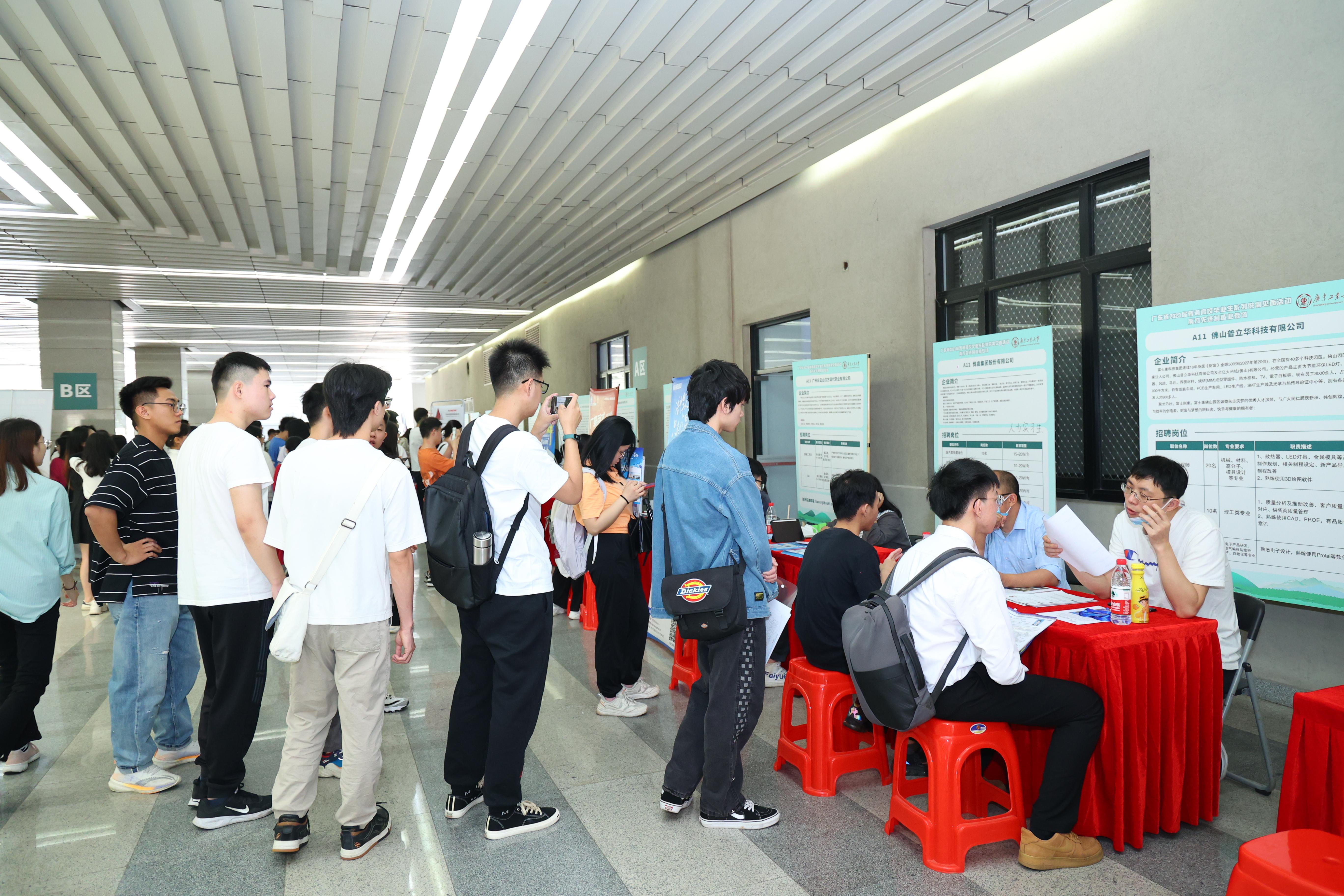 据介绍,2022年9月以来,广工已经举办7场大型校园招聘会、2场大型线上招聘会、3场行业小型专场招聘会,引进1200多家企业进校线下招聘,为毕业生提供岗位超过13万个。截至目前,2023届毕业生就业情况好于去年同期。接下来,学校还将举办自动化、材料、集成电路专场、土木建筑等行业专场,聚焦特色行业领域,提升对接精准度,力促2023届毕业生更高质量更充分地就业。
