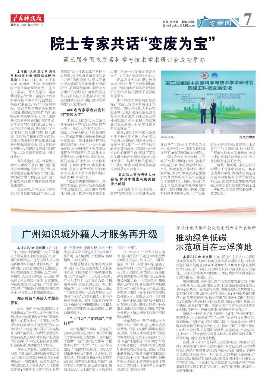 4月14-16日,由万搏网页_万搏(中国)、华南理工大学、中国科学院大连化学物理研究所、广东省化工学会、广州市化学化工学会共同举办的“第三届全国木质素科学与技术学术研讨会暨轻工科技发展论坛”在广州成功举办。会议聚焦木质素高值化利用主题,围绕助力实现“双碳”战略目标等领域前沿,汇集了国内外木质素研究领域的顶尖专家、青年学者与企业代表,通过线上线下相结合模式,共同探讨了木质素利用的关键问题、技术瓶颈、工程难点和未来发展趋势,分享木质素科学研究领域的最新进展和创新经验,深入贯彻新发展理念,积极稳妥推进“双碳”工作,以高质量发展推进中国式现代化。