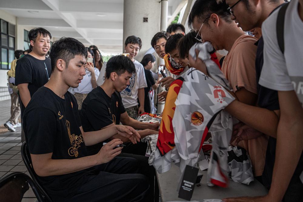 广工学子对于本校球队的支持超乎想象。见面会定于26日14时进行,但正午刚过,就有球迷来到体育馆外占位等待入场。在体育馆外广工男篮相关产品销售的摊位,各类商品更是卖到脱销,很多球衣都已经断码,而陈国豪的23号球衣则最受欢迎。等到广工男篮全队步入体育馆,全场立刻爆发出热烈的欢呼声,“MVP!”的叫声此起彼伏,广工学子们热情地向自己球队的队员打着招呼。