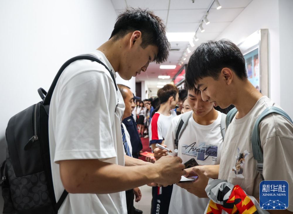 ↑6月28日,陈国豪在参加学位授予仪式前为球衣签名。
