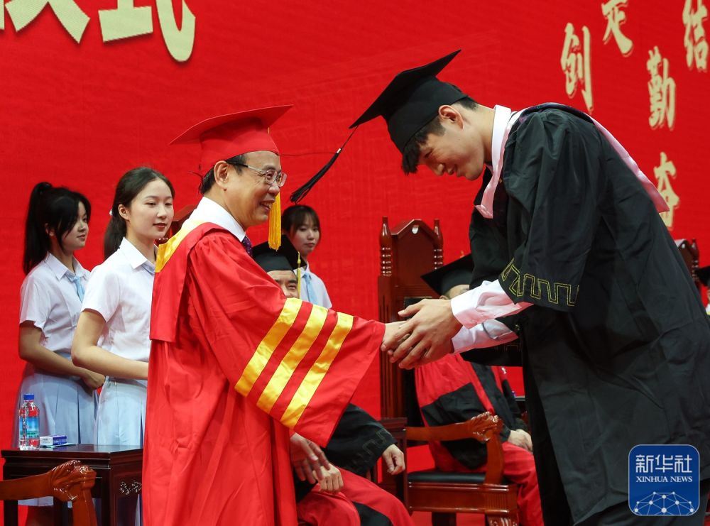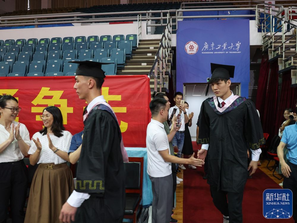↑6月28日,陈国豪(右一)进入学位授予仪式现场。