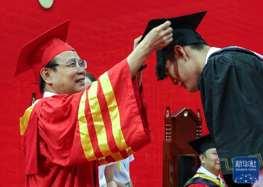 ↑6月28日,陈国豪整理学士帽准备参加学位授予仪式。