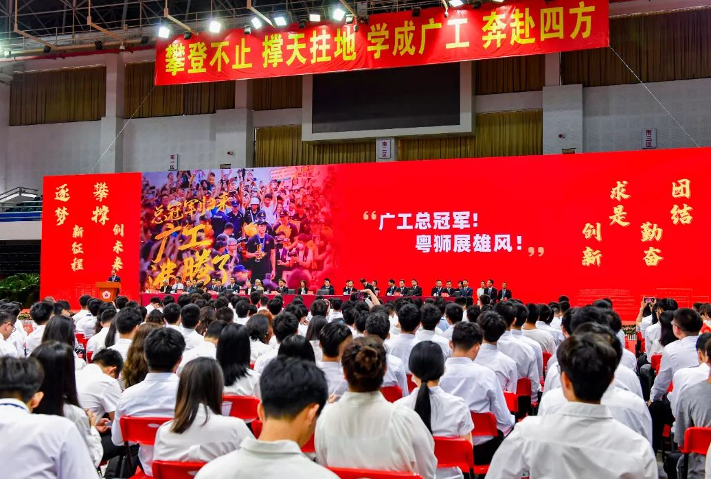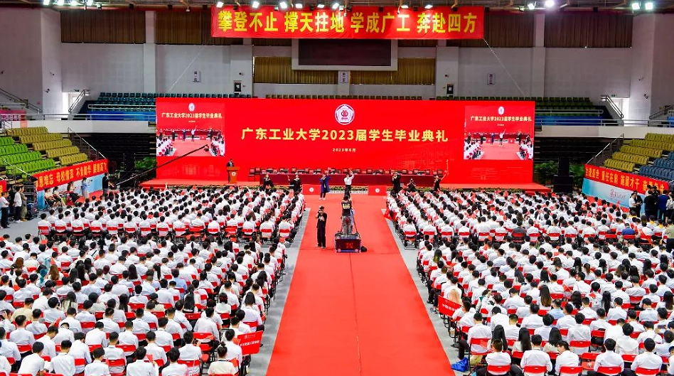 “回想多年前,来自五湖四海的你们满怀憧憬走进校园,成为广工新人;今天,你们又将走向天南地北,拥有一个新的身份——广工校友。”校长邱学青以《人生不设限 攀撑赢未来》为题发表讲话。他深情回忆了同学们在校园生活的青春印记,与广工共同成长的点点滴滴,为同学们在青春的征程上不设限、不服输、不畏难,始终展现出敢挑战、不放弃、勇争先的“广工精神”点赞。