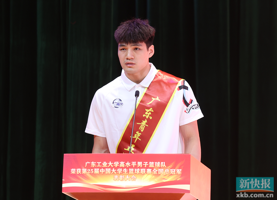 “与其说是我选择广工,不如说是广工发掘了我、培养了我,给了我一个施展身手的大平台。”不仅是于广龙,这也是一场广工与陈国豪的双向奔赴。球员代表陈国豪回望大学四年生活,感谢老师、教练、队友们的支持和帮助,大家的共同努力,成就了他的无悔青春。在他看来,唯有“奋斗”“拼搏”才能成就梦想。“有信念、有梦想、有奋斗、有奉献的人生,才是有意义的人生。”作为主力球员,他要加紧备赛刻苦训练,带领球队获得好成绩;作为学生,也要坚持上课学习提升自我。皇天不负苦心人,团队拿到了总冠军,他也顺利保送广工管理学院继续攻读硕士研究生。