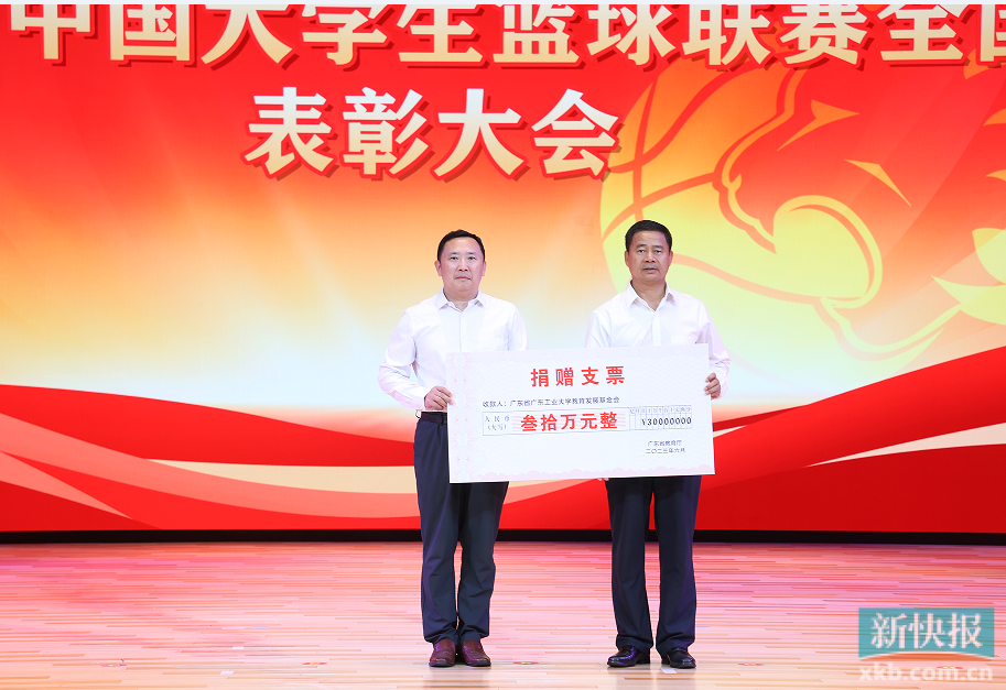 大会进行奖金颁授仪式和体育器材捐赠仪式。6月19日上午,省教育厅专程到机场接机,迎接广工男篮凯旋,并第一时间给予30万元奖励。之后,广东省体育局、团省委牵头分别向广工赠送30万元奖励。广东省体育局还联合相关企业捐赠一批价值30万元的体育器材。另外,一位陈姓校友,向学校捐赠30万元。