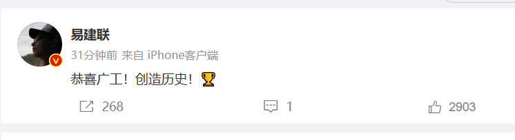 祝贺广工夺冠!
