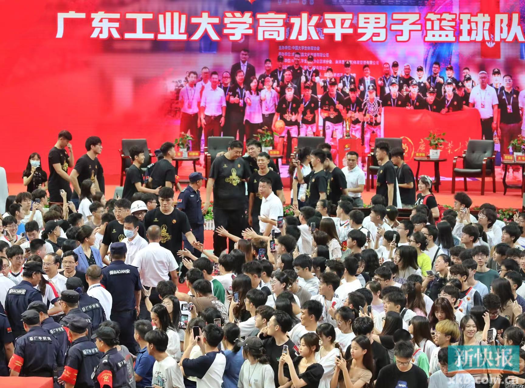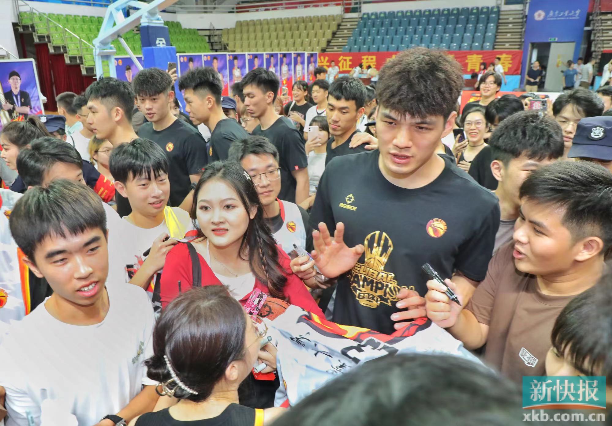广工男篮夺得CUBAL总冠军之后,球队的球迷见面会在校园里举行。在一众踊跃的球迷当中,几位幸运儿登场,与广工男篮的球员们亲切互动。新快报记者 李小萌/摄
