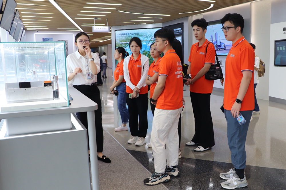 营员们走进华为终端公司,深入了解华为在技术创新和研发方面的努力与成果,惊叹科技的每一次突破、应用的每一次进步都离不开创新的力量与拼搏的精神;走进广汽科技园,领略高水平的广东智能制造,感受大湾区科技创新的魅力;走进南沙创享湾,感受大湾区对港澳青年创新创业的政策“东风”,埋下抓住粤港澳合作平台机遇逐梦“湾区创业”的种子;走进广汽埃安总装车间,探索汽车智能制造的奥秘。“智能机械臂助力汽车自动化制造模式,让我感受到了内地先进的智能制造技术,而公路上的无线充电发明更是让我对粤港澳大湾区的创新能力和未来发展充满期待!”来自香港的营员陈骄激动地表达道,“内地在新能源汽车等方面的发展与领先程度让人印象深刻,未来非常希望能够在这些方面有更深入的了解和研究”。