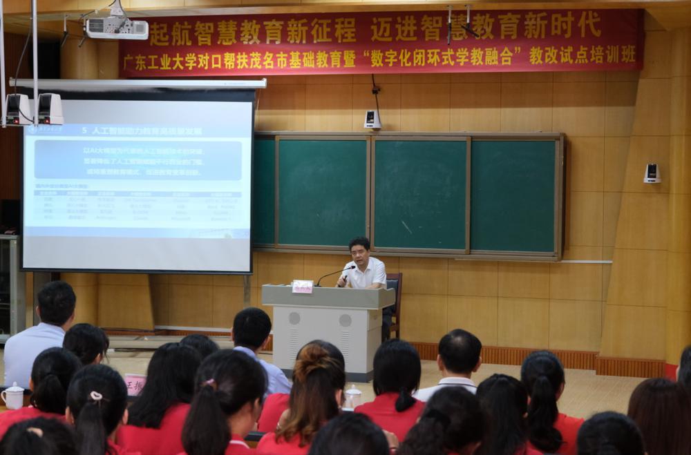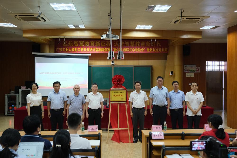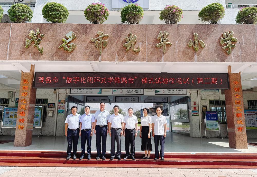 胡钦太一行与茂名市委教育工委书记、市教育局党组书记、教育局局长林卫兴,试点学校校长等共同为茂名市“数字化闭环式学教融合”模式试点培训班揭牌,茂名市光华小学和福华小学全体试点教师共同见证。