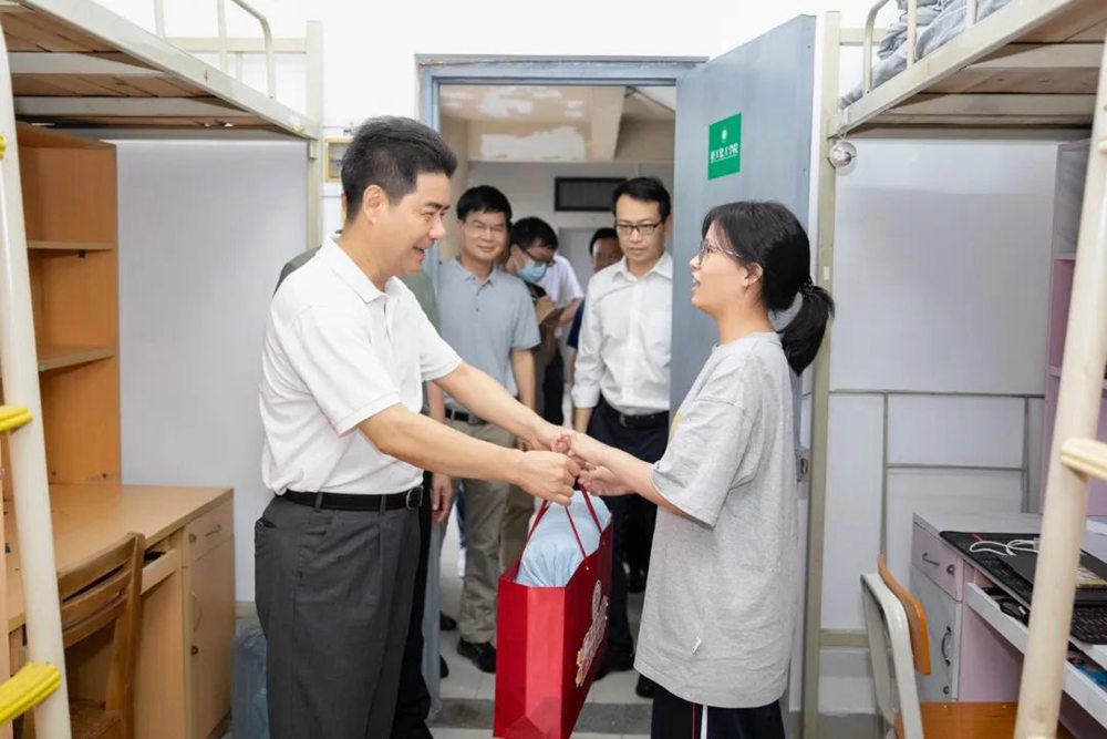 “天气变化大,有没有什么不适应?”“有困难就及时反馈,学校是你们温暖的大家庭!”学校党委书记胡钦太、校长邱学青等校领导到各校区看望新生并送上“大礼包”。胡钦太勉励新生,要用最大的热情拥抱广工,在学校实现人生价值与理想。“校长,求合影!”新生见到“网红”校长倍感兴奋。“选择广工是没错的!你们会在这里学到很多知识和本领,成为对国家、对社会有用的人。”邱学青与新生和家长亲切交流。