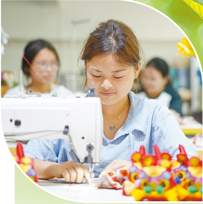 贵州省黔东南民族职业技术学院实训基地,学生在制作文创饰品。
