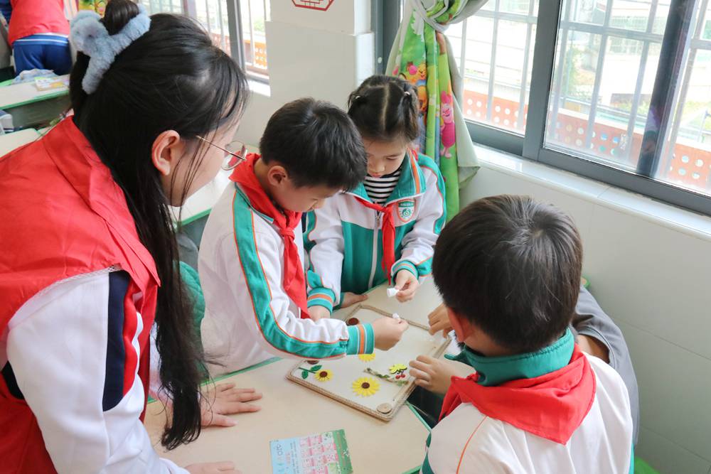 我和小树“合个影”、我和小树“抱一抱”、我和小树“比身高”等活动,让小学生们在园艺体验中亲近自然,在与植物互动中增加对生命成长的期待。园艺活动呈现出小学生们与环境的积极“对话”,萌发出学生热爱自然、保护环境的积极情感,也在感受心间“绿”动中让植物成为调节情绪的“理疗师”,实现绿色环保与心理疗愈的双驱动。