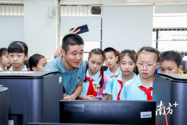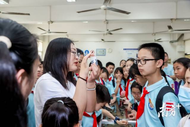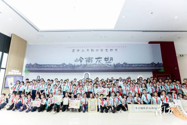 在岭南灰塑工作坊里,孩子们聚精会神地听老师讲述灰塑艺术与传统文化如何结合的故事、欣赏岭南灰塑非遗大师作品。