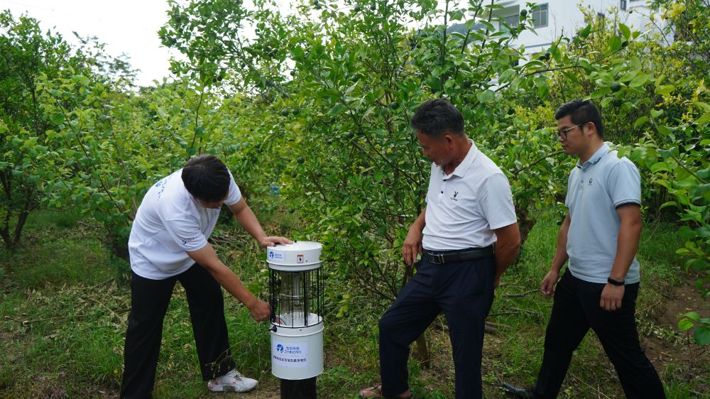 九市镇盛产龙眼、荔枝、黄皮等,当地虫害风险也较高。团队带来了研发三年的AI虫害监控设备到现场讲解原理、进行试验推广。该设备通过前期在云端构建虫形信息数据库,可精准识别高压电网捕捉的害虫类型,结合虫害类型比例,针对性提供用药与防治建议。
