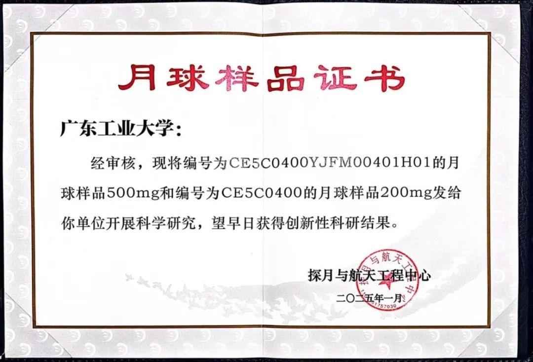 据了解,广工近年来充分发挥学科优势,瞄准学科前沿,成立多个学科交叉创新研究院,全力投身前沿领域,服务国家重大战略。本次嫦娥五号月壤样品的获批,将进一步推动广工在相关交叉创新领域的科学研究,为服务国家战略展现广工担当。