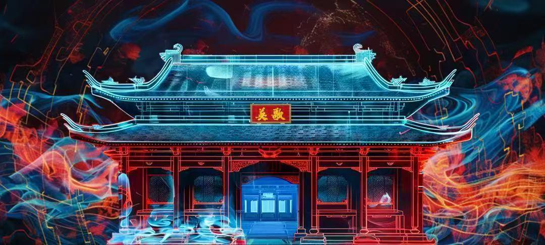 中国非遗春节联欢晚会上,广工师生协同创作的AI数字舞台同样亮点频出。潮汕英歌节目《一身正气》将传统锣鼓与现代摇滚乐结合,融入电音、鼓点和电流音效。舞美设计借助AIGC生成手段,把潮汕祠堂民居、建筑纹样等搬上舞台,以蓝红为主色调,运用光线动效等手法,展现潮汕英歌“刚柔并济”的文化内涵,诠释“水火既济”的哲学观。