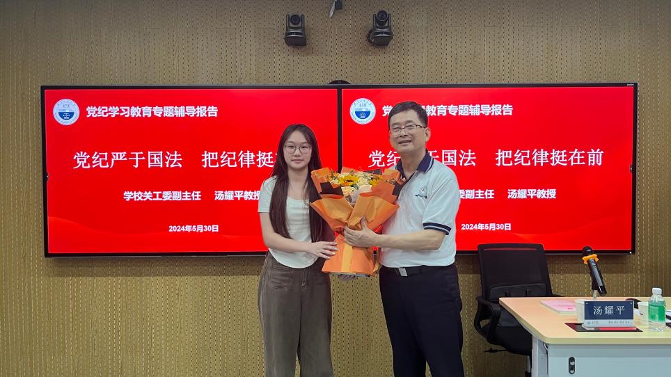 为深入开展党纪学习教育,做好新时代发展党员与党员教育管理工作,5月30日,学院特邀学校关工委副主任汤耀平教授作题为《党纪严于国法 把纪律挺在前》的专题辅导报告。学院党委书记黄斐斐、副书记陈嘉、组织员靳挺宇、各学生党支部党员及入党积极分子60余人参加。