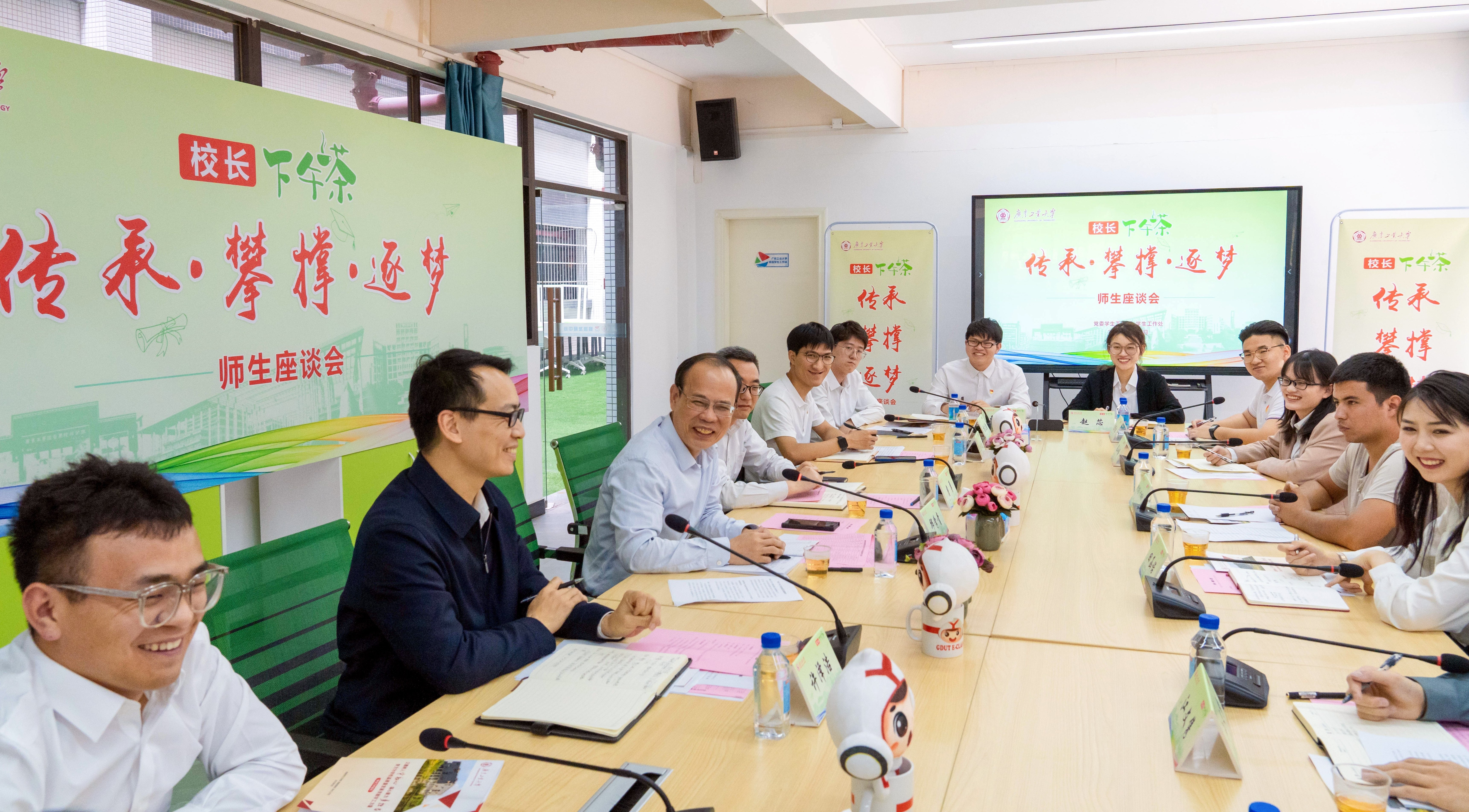 邱学青校长在“校长下午茶”活动中与同学们亲切交流