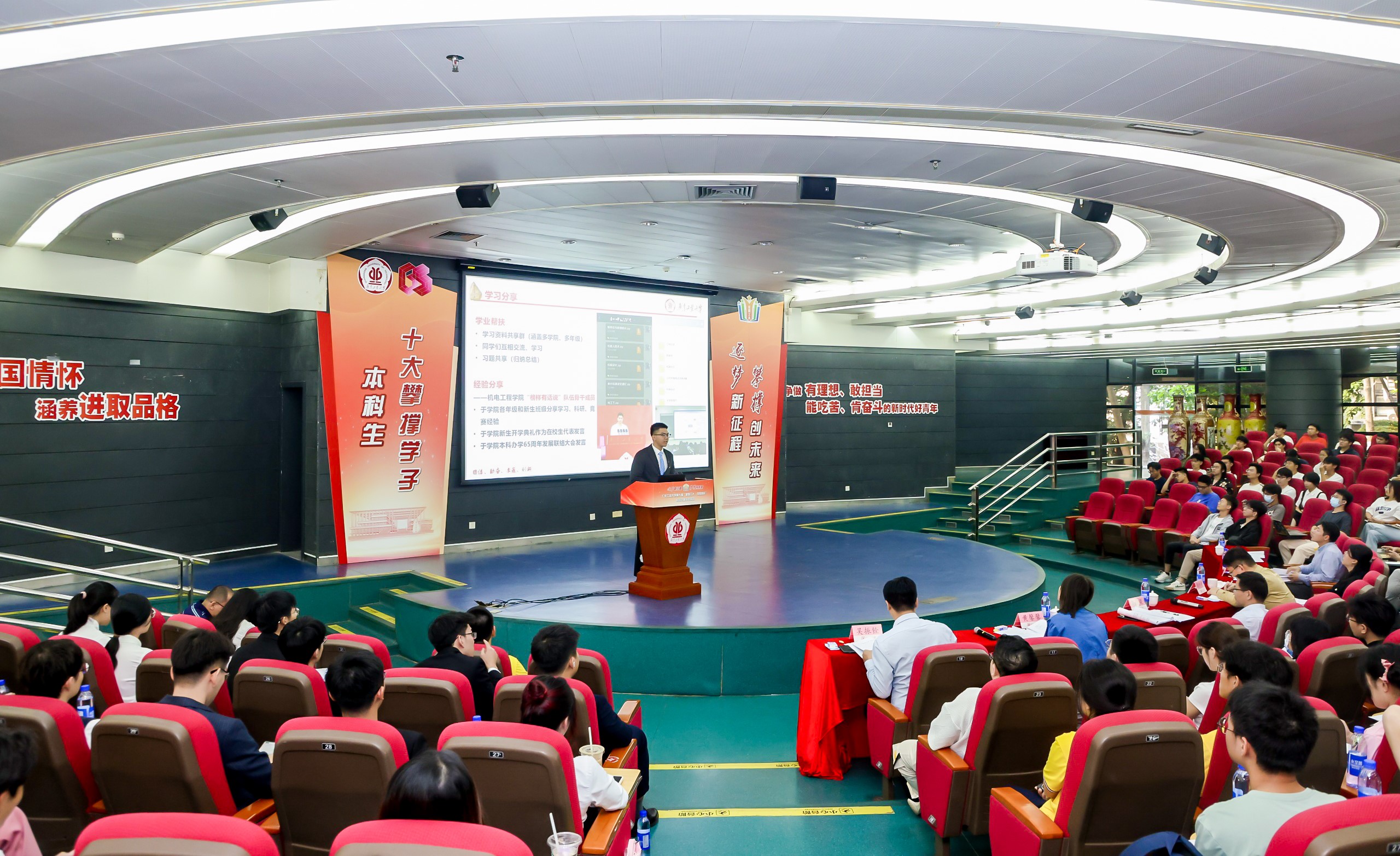 突出示范引领,加强优秀学生选树宣传。开展“星耀工大·筑梦成长”校园之星评选表彰展示活动,每年选树嘉奖“攀撑学子”“特色标杆之星”等在学习生活、科研实践等各领域取得突出成绩的优秀学生个人百余名,组织获奖学生开展“优秀青年群像”专访、“攀撑的力量”优秀榜样社区分享会等活动。举行优秀大学生颁奖盛典,加强学生先进人物事迹宣传,充分发挥示范带动作用,营造争先创优的良好学习氛围,以高质量的榜样教育引领建设优良校风学风。